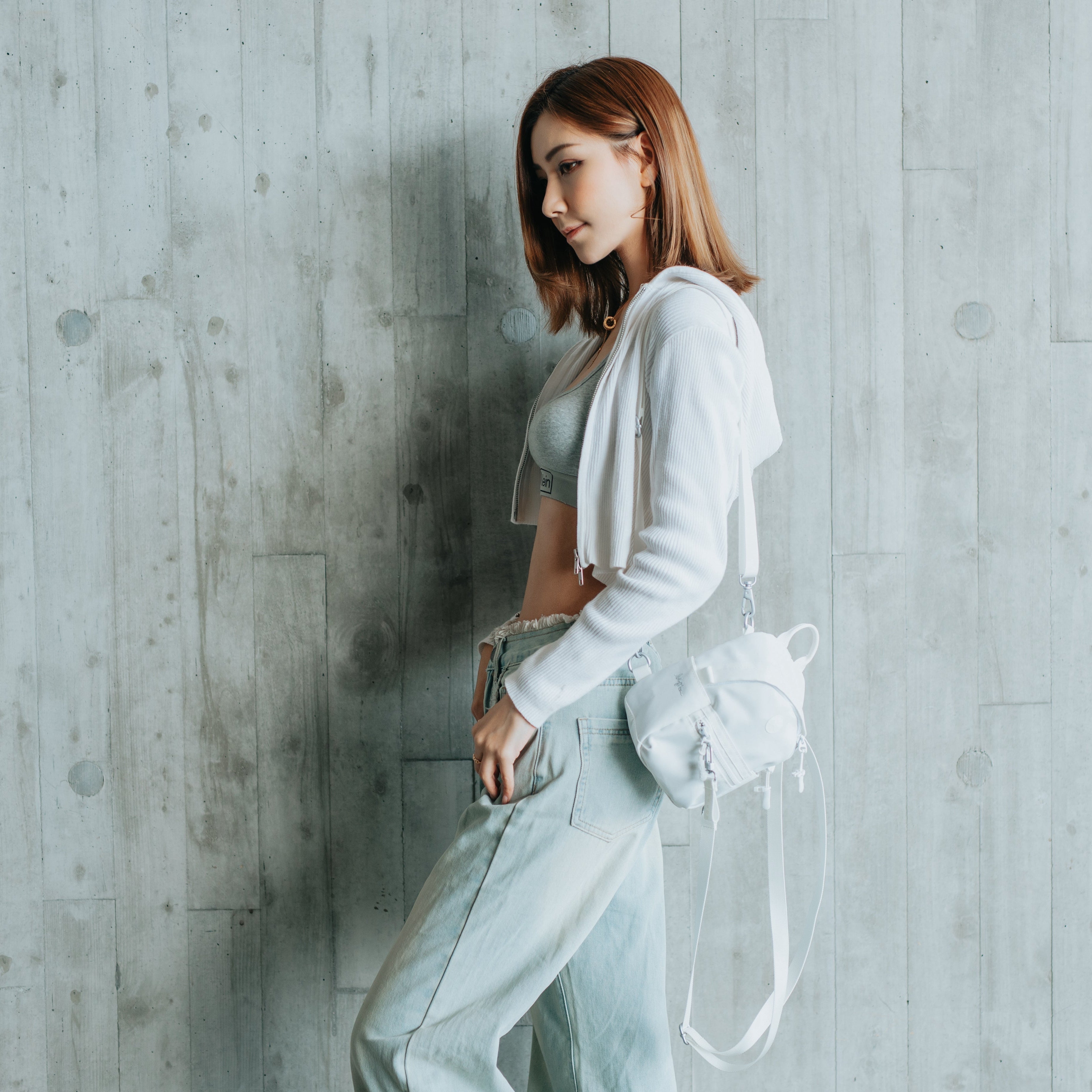 The long-awaited “MIYOMM x MORAL” collaborative fast-degradingbackpack was designed with Miyo's personal involvement. Unlike other large, flashy bags, this compact backpack features a curved, elegant silhouette. Using different strap combinations, the backpack can be transformed into a side sling bag to bring a touch of style to everyday outfits. The lightweight backpack is also adorned with the Miyommemblem, stitched with silver aluminum thread, and a subtle Moral logo design to combine sustainability with fashion chic.