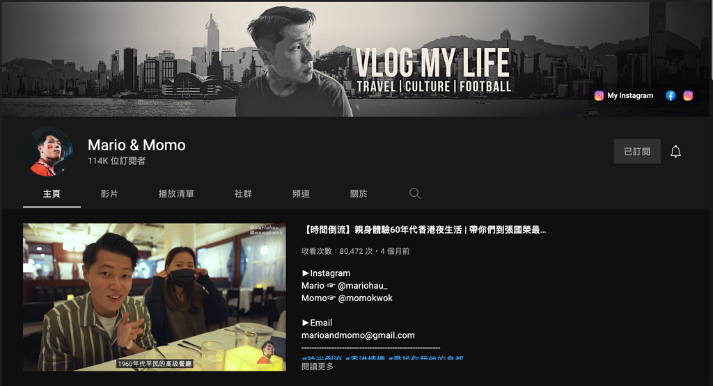 Mario&Momo是香港本地vlogger,早期分享外國生活時經歷,分享自己的生活趣事。從外國回到香港後,透過vlog帶出香港地度及貼地的生活體驗,分享本地文化。